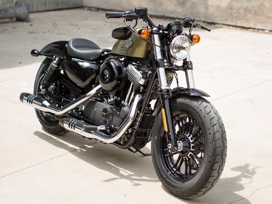 Мотоцикл Harley-Davidson Forty-Eight - неплохое решение для городских поездок, это агрессивный олдскульный чоппер с выразительным дизайном. Его классические черты сочетаются с качеством исполнения отдельных элементов и современными технологиями, на дорогах привлекает внимание «фирменная» перламутровая окраска. Главной особенностью мотобайка Harley-Davidson Forty-Eight является бензобак типа «peanut». Он объемный, а его прямое днище создает дополнительное пространство и визуально открывает двигатель. Современные приборы и оптика байка выполнены в классическом стиле, который гармонично дополняется эгоистичным одноместным сиденьем.